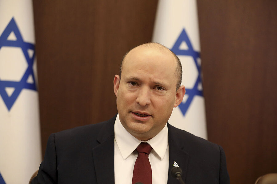 Israeli Prime Minister Naftali Bennett heads a weekly cabinet meeting at his office in Jerusalem, Nov. 7, 2021. In his first foreign trip as prime minister in July, Mr. Bennett visited Jordan's King Abdullah II at his palace in Amman.