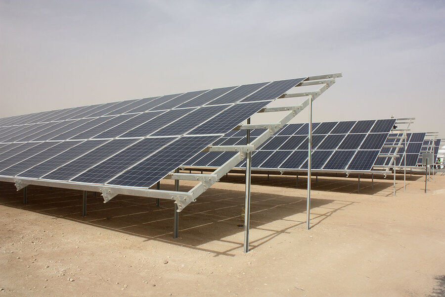 A 12.9-megawatt solar farm powering the Zaatari Syrian refugee camp in Zaatari, northern Jordan, in November 2017. Advocates believe Jordan, with one of the highest solar radiation rates in the world, can export solar energy to Israel and elsewhere across the region.